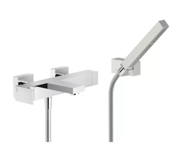 BAD, EXTERNE EINHEBELMISCHBATTERIE MIT DUSCHSET. 50% Zweistufenkartusche zur Wassereinsparung