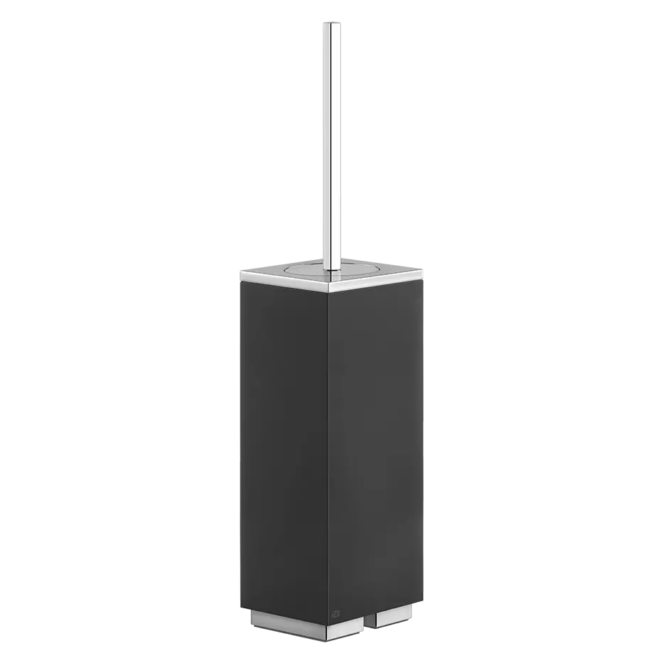 Schwarzer freistehender Bürstenhalter. Die unveränderten freistehenden, wandmontierten und deckenmontierten Rettangolo-Armaturen, Badezimmeraccessoires und andere Produkte mit ihrer Vielzahl von Modellen, Versionen und koordinierten modularen Elementen eröffneten den Weg zur vollständigen Freiheit bei der Gestaltung des Badezimmers. Jeder Hausbesitzer konnte endlich die Einrichtung nach seinem eigenen Geschmack abstimmen und wurde zum wahren Schöpfer seines Wohnraums.