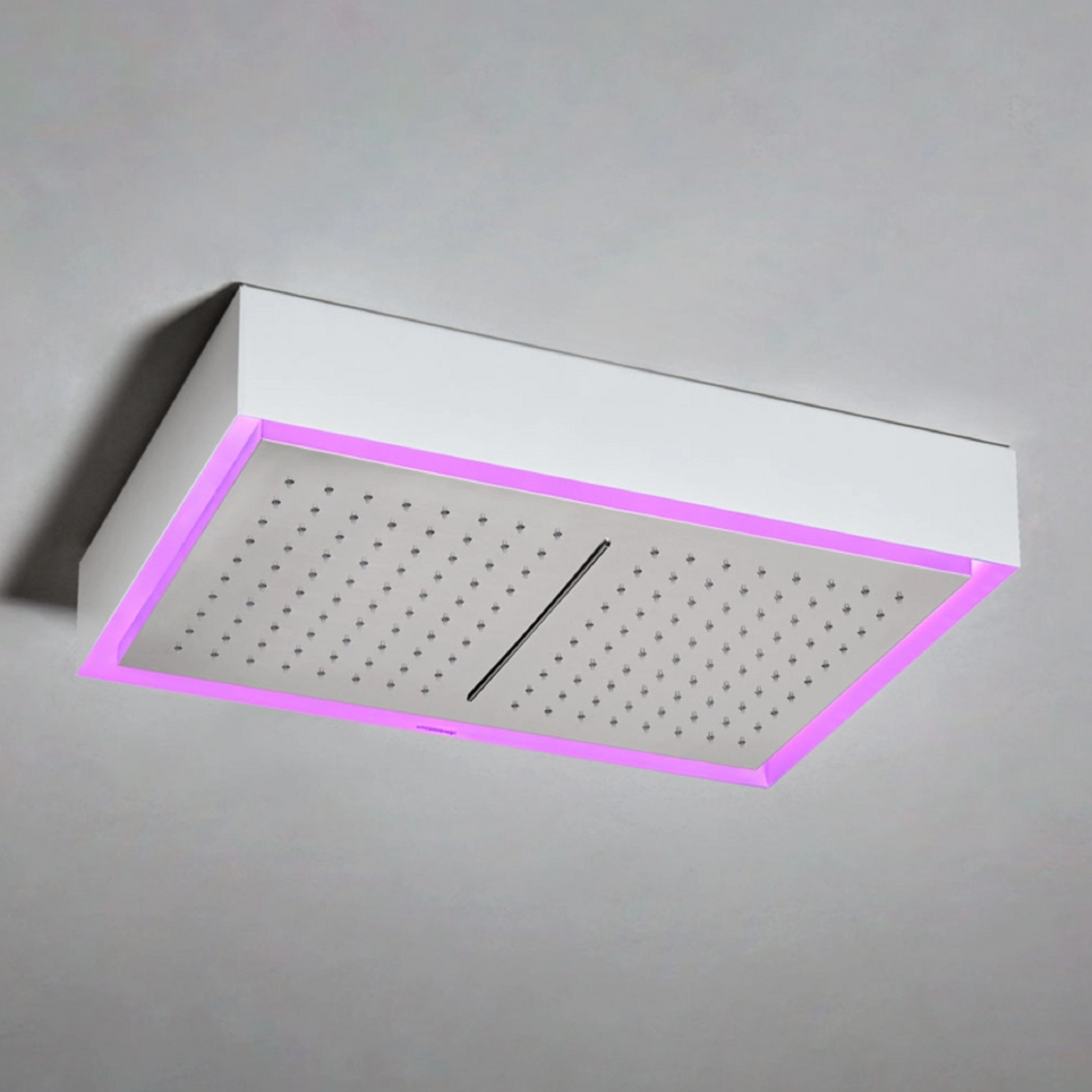 Deckenduschkopf mit Wasserfall und Stahlstruktur AISI 304 in verschiedenen Ausführungen lieferbar, auch mit RGB-Led Beleuchtung inkl. wasserdichter Fernbedienung und Transformator erhältlich. H 9 P 35 L 52.Delivery: 8-12 weeks