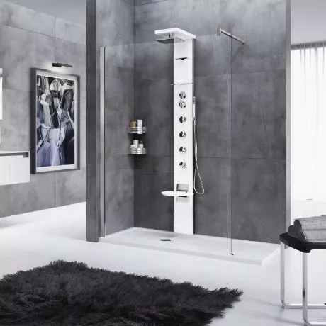 AUSGESTATTETES PANEL MIT ALUMINIUMSEITENPROFIL UND ACRYL-FINISH, DUSCHKOPF, ECK- ODER WANDMONTAGE