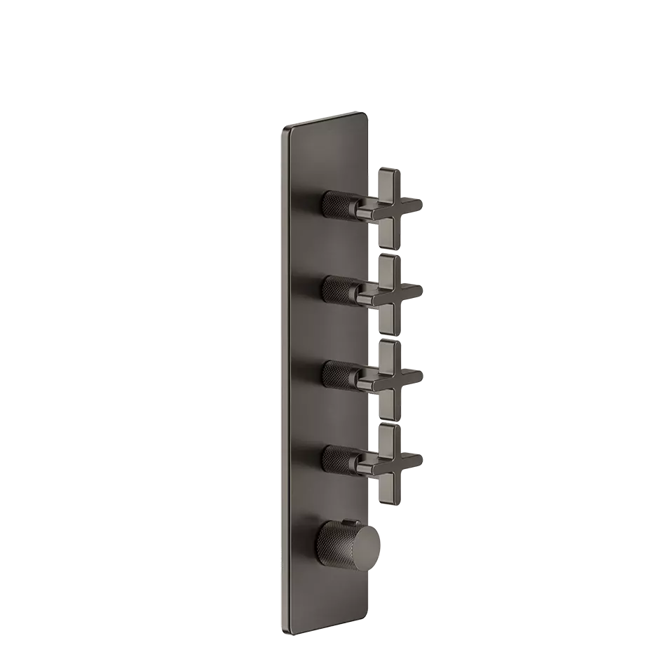 Externe Teile für wandmontierten thermostatischen Hochleistungsmischer. Vertikale/horizontale Installation mit VIER SEPARATEN AUSGÄNGEN. Die Gessi Inciso-Serie verbindet zeitlose Eleganz und modernes Design mit opulenten Badezimmerarmaturen, die klare lineare Muster und zarte Details aufweisen. Gessis Hingabe an hervorragende Ästhetik spiegelt sich in dieser Kollektion wider, die ein harmonisches Gleichgewicht von Form und Funktion für Personen bietet, die eine raffinierte und elegante Badezimmereinrichtung suchen.