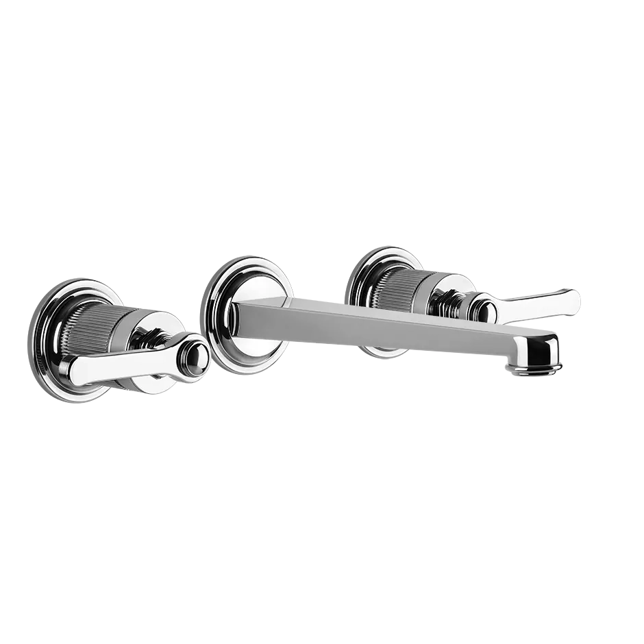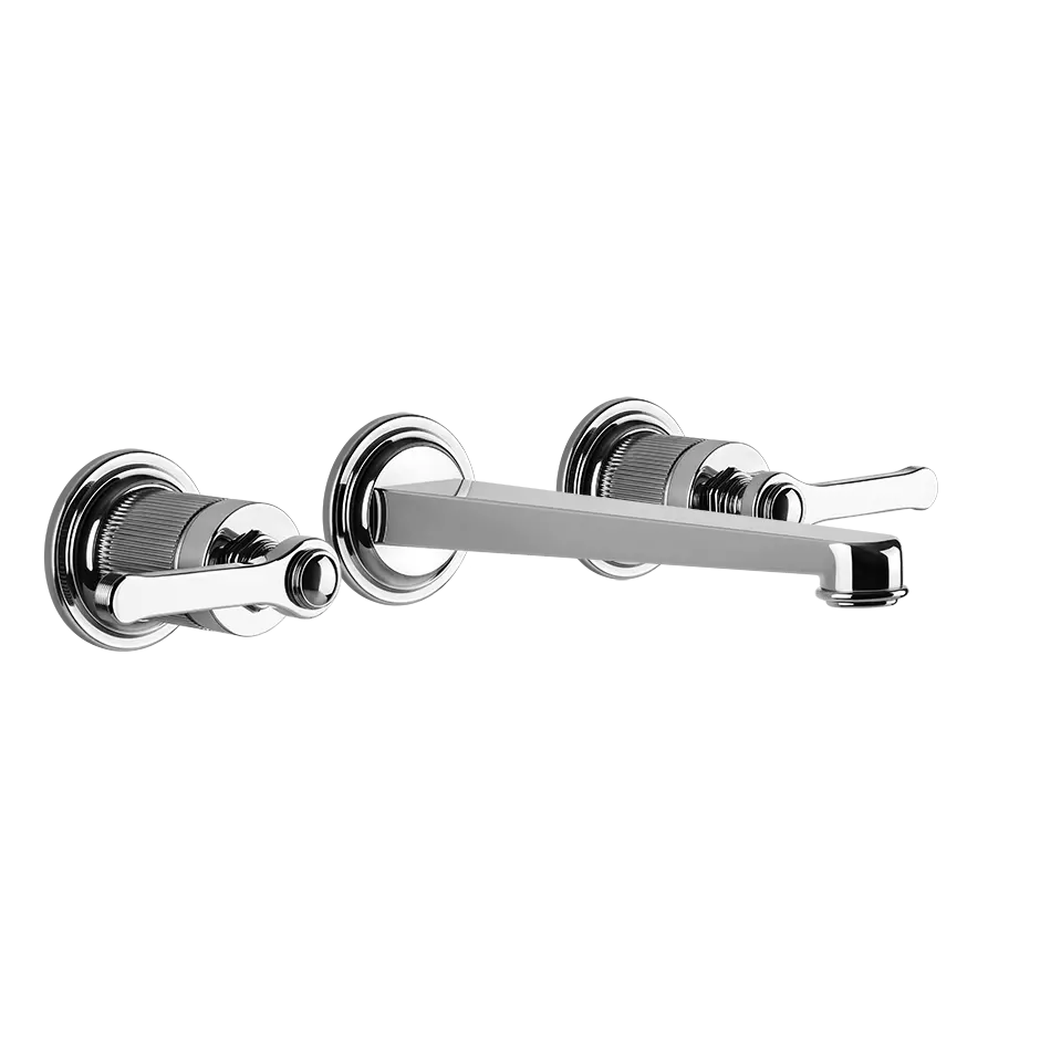Externe Teile Drei-Loch-Waschtischmischer mit mittlerem Auslauf, ohne Ablauf. Die Venti20 Kollektion nimmt die Begeisterung für das Leben und den zukunftsweisenden Optimismus dieser Ära auf und bringt sie in die privaten Räume des zeitgenössischen Wohnens.