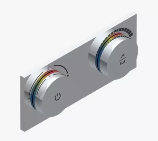 Verkleidung für elektronische wandmontierte Badsteuerung, Ein/Aus und Temperaturregelung, 2 Funktionen. Bilder von Artikel G00-6770DB