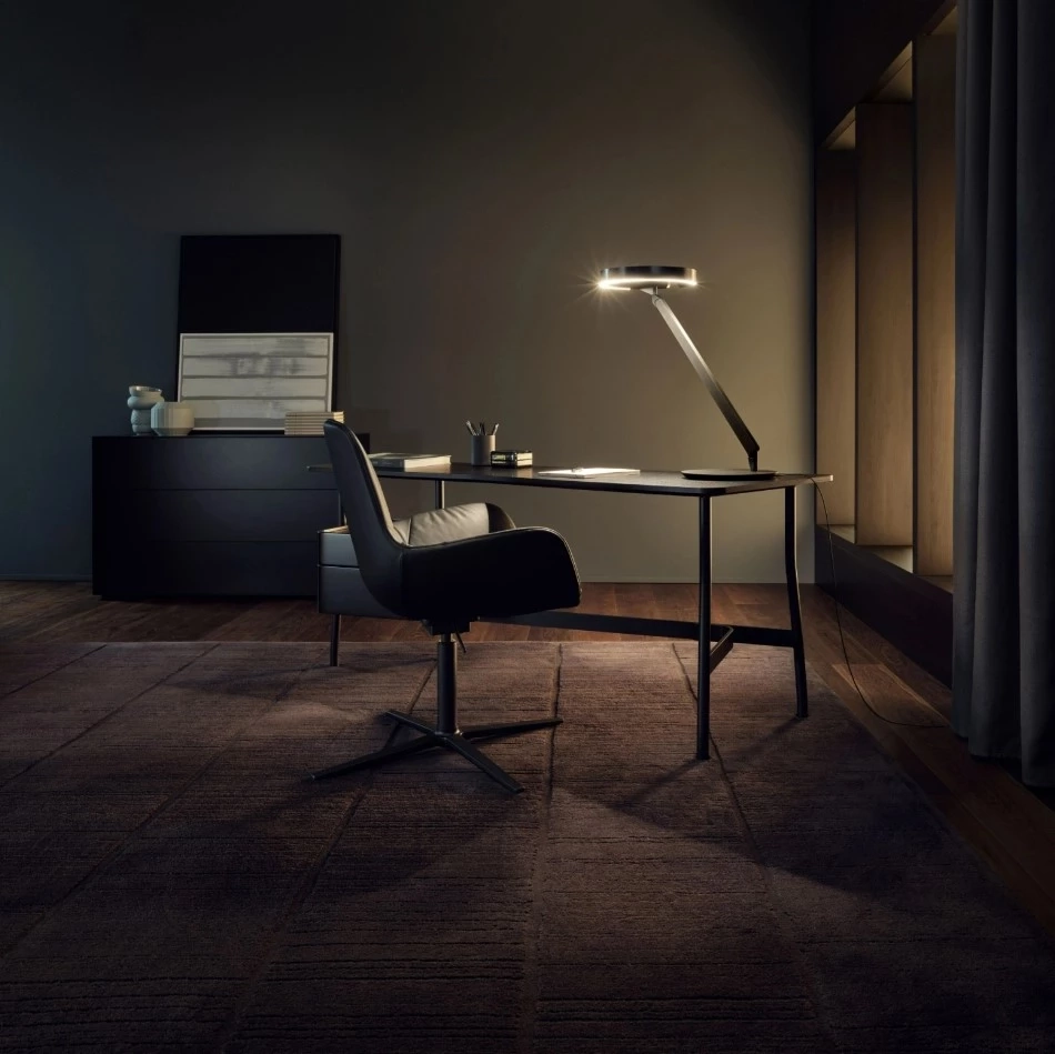 Wirklich vielseitig, Gioia tavolo eignet sich ideal für den Einsatz in Ihrem Arbeitsbereich oder Home-Office auf kleineren Tischen. Der Leuchtenkopf und der Körper sind um 360° drehbar, mit den typischen Occhio-Funktionen plus einem Zusatz: »Fokuslicht« - für fokussiertes Arbeiten. Licht, das auf Ihre Handbewegungen reagiert. Das Sie nach oben oder unten richten können, um die perfekte Atmosphäre zu schaffen. Dessen Farbtemperatur Sie jederzeit ändern können, um die Konzentration oder Entspannung zu steigern. Das Sie mühelos dorthin bewegen können, wo es benötigt wird - mit einem Strahl so breit oder fokussiert, wie Sie möchten. Gioia bedeutet Freude - Freude an der Magie des perfekten Lichts.