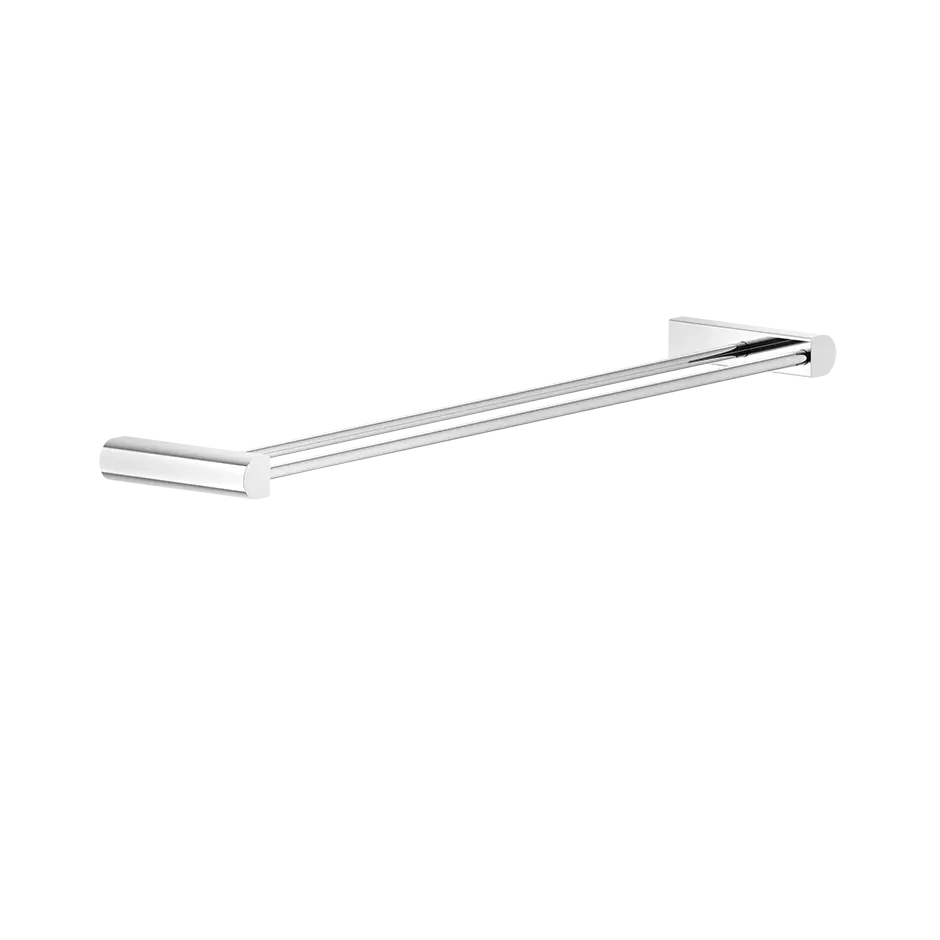 60 cm wandmontierter Doppelhandtuchhalter. Gessi hat eine etablierte Tradition, Badezimmerkonzepte zu schaffen, die Empfindungen von Reinheit und Wohlbefinden, visueller Ordnung und Koordination im Raum inspirieren, Produkte, die darauf ausgelegt sind, dem Körper und Geist des Benutzers förderlich zu sein. Die hybride Natur des Designs mit seiner Begegnung von kurvigen und geraden Linien macht Rilievo perfekt passend zu runden und quadratischen Formen und passt perfekt in extrem vielfältige Umgebungen, sei es minimalistisch oder dekorativ. Die geschmeidige ästhetische Vielseitigkeit von Rilievo ist ein Vorteil für ein Produkt, das für funktionale und elegante Badezimmer in der Welt der Gastfreundschaft sowie in privaten Residenzen konzipiert wurde.