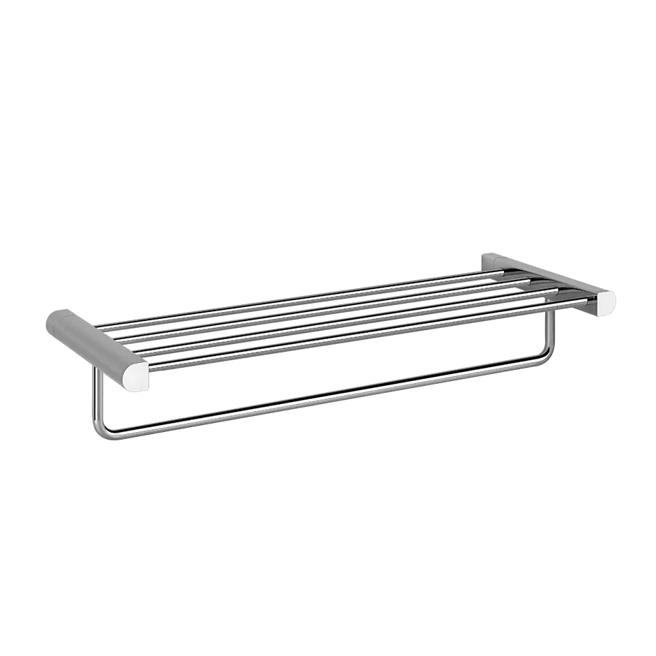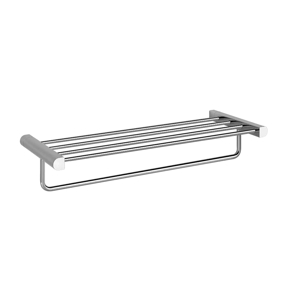 60 cm wandmontierter Handtuchhalter. Gessi hat eine etablierte Tradition, Badezimmerkonzepte zu schaffen, die Empfindungen von Reinheit und Wohlbefinden, visueller Ordnung und Koordination im Raum inspirieren, Produkte, die darauf ausgelegt sind, dem Körper und Geist des Benutzers förderlich zu sein. Die hybride Natur des Designs mit seiner Begegnung von kurvigen und geraden Linien macht Rilievo perfekt passend zu runden und quadratischen Formen und passt perfekt in extrem vielfältige Umgebungen, sei es minimalistisch oder dekorativ. Die geschmeidige ästhetische Vielseitigkeit von Rilievo ist ein Vorteil für ein Produkt, das für funktionale und elegante Badezimmer in der Welt der Gastfreundschaft sowie in privaten Residenzen konzipiert wurde.