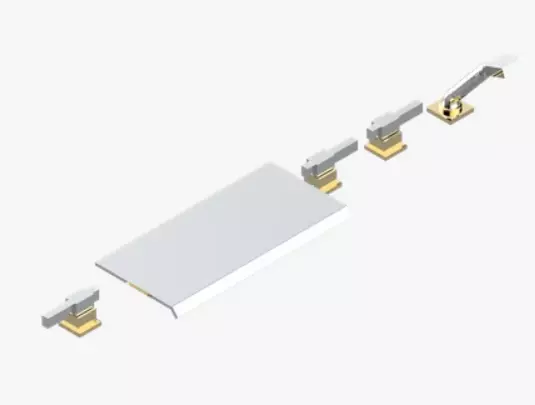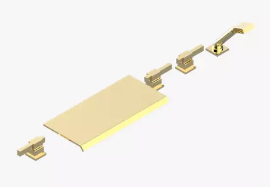 Wannen-/Brausemischer-Set für Wannenrandmontage mit 400-mm-Wasserfallauslauf, Anschlusssatz und Schläuchen, 2 x 3/4-Zoll-Ventilen, 4-Wege-Umsteller für Randmontage und Handbrauseset für Randmontage, römisches Wannenset mit 3 Ventilen für Deckmontage, Handbrause und Umsteller. Bilder des Artikels A61-1120/D