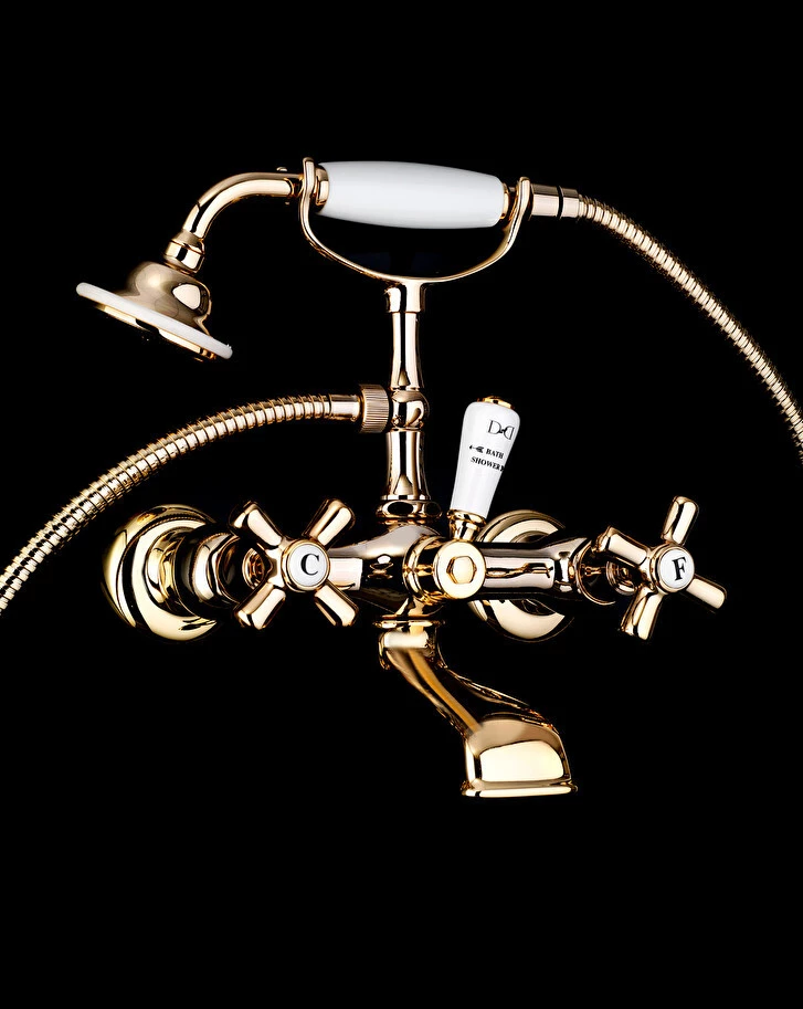 Ein eleganter, britisch inspirierter, wandmontierter Badewannenmischer mit Handbrause und Schlauch, der Vintage-Atmosphären perfekt mit zeitgemäßer Funktionalität kombiniert. Aus Messing gefertigt, ist er in den folgenden Ausführungen erhältlich: antik-Kupfer, Bronze, Chrom, poliertes Nickel, schwarz-Nickel, satiniertes Nickel, helles Gold und Roségold.