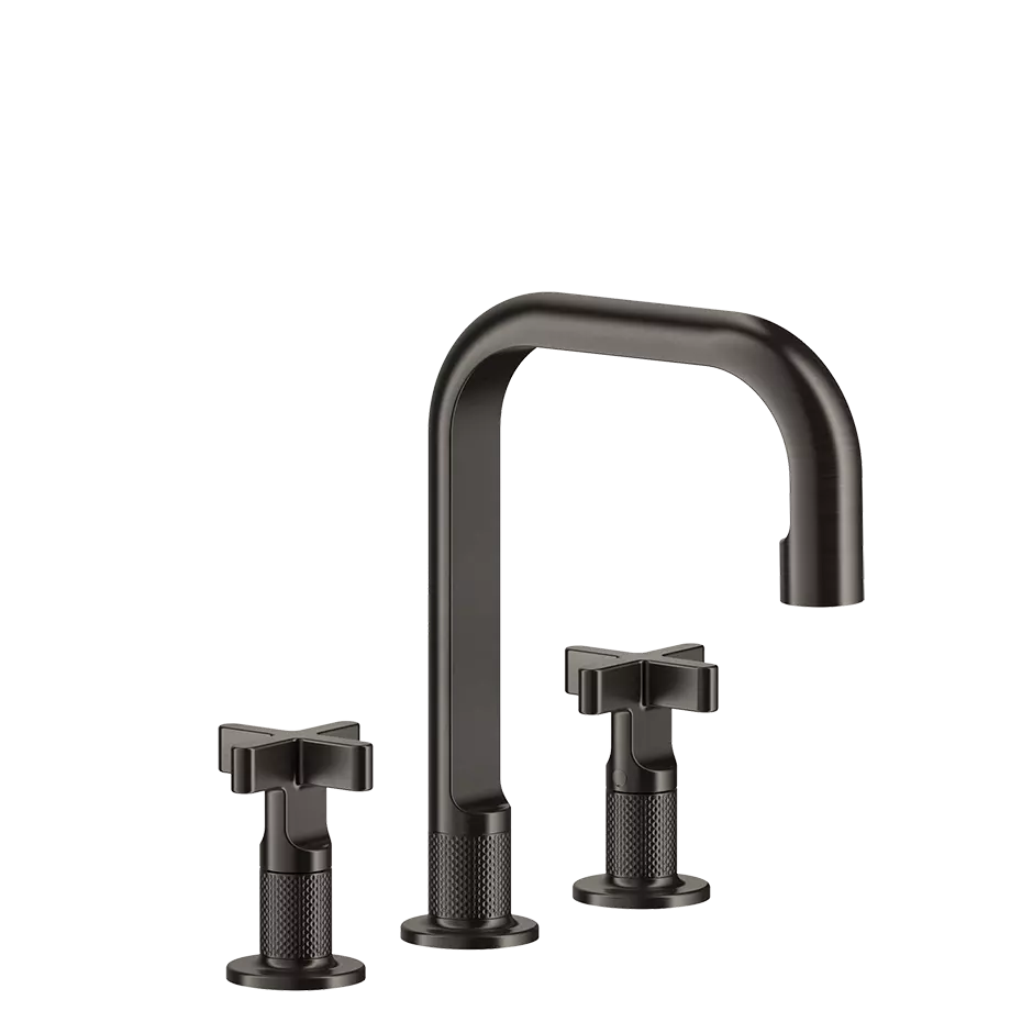 Mittlere Version Drei-Loch-Waschtischmischer mit flexiblen Schläuchen mit Abfall. Die Gessi Inciso-Serie vereint zeitlose Eleganz und modernes Design mit opulenten Badezimmerarmaturen, die klare lineare Muster und zarte Details aufweisen. Gessis Hingabe an hervorragende Ästhetik spiegelt sich in dieser Kollektion wider, die eine harmonische Balance von Form und Funktion für Personen bietet, die eine raffinierte und elegante Badezimmereinrichtung suchen.