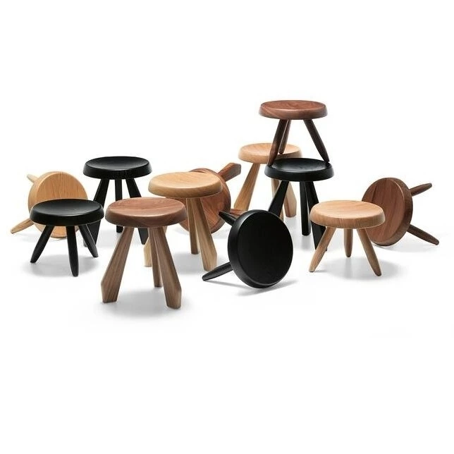 Beide Stücke sind von den Bergen inspiriert. Während das Letztere seinen Namen vom Melkschemel der alpinen Hirten ableitet, ist das Erstere von der französischen Ortschaft inspiriert, die Designerin und Architektin Charlotte Perriand sehr liebte. Diese Einrichtungsaccessoires zeichnen sich durch die Ehrlichkeit ihrer einfachen Formen und den konkreten Ausdruck ihrer Materialien und Funktion aus. Der gedrehte Sitz trifft sowohl bei dem Tabouret Berger, einer niedrigeren Version mit drei Beinen aus handgedrehtem Massivholz, als auch bei dem höheren Tabouret Méribel, der drei eckige Beine hat, auf die stilisierten Beine. Hergestellt von Cassina dank einer sorgfältigen handwerklichen Arbeit, die die Authentizität des Originaldesigns respektiert, können diese kleinen Meisterwerke alleine oder in kreativen Kompositionen verwendet werden. Die Verwendung von Massivholz vermittelt ein angenehmes Gefühl von Weichheit, und wir sehen die Kontinuität der Maserung über den Sitz bis zu den Rändern, wobei die Natur auf jedem eine einzigartige Musterung schafft.