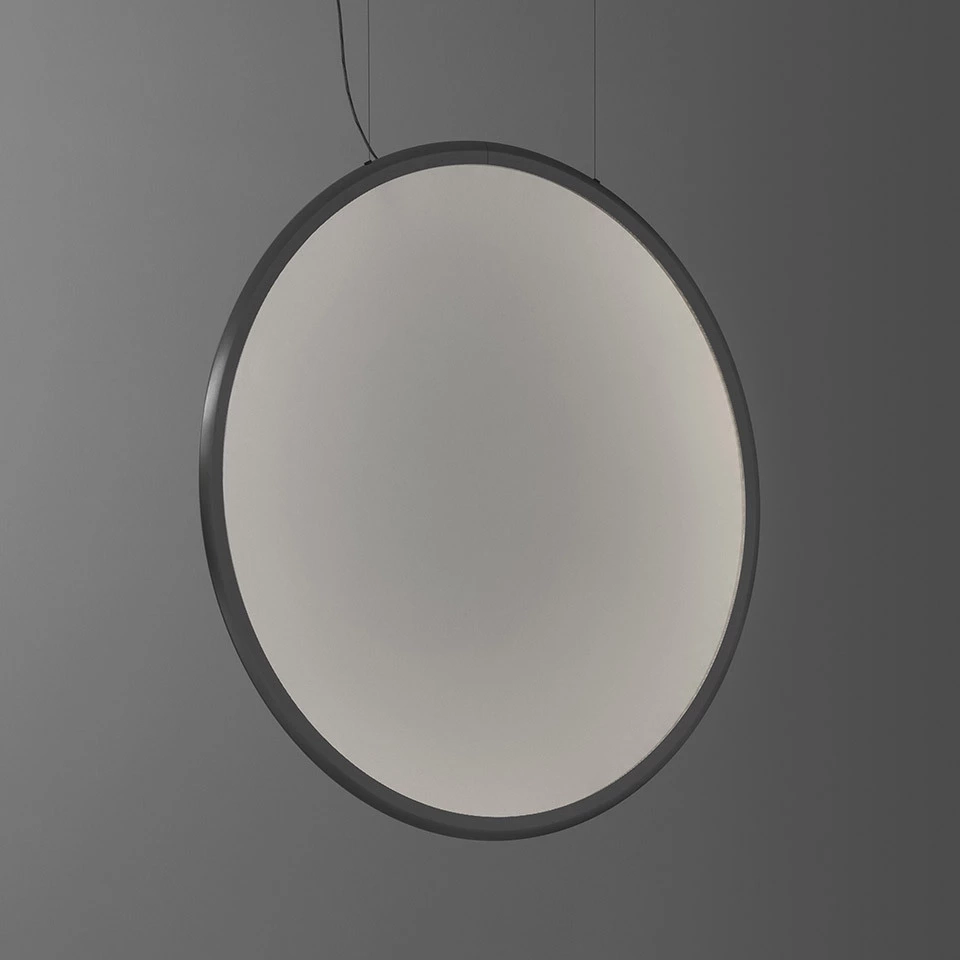Discovery ist ein unauffälliges, völlig abwesendes und immaterielles Element. Sein Volumen wird nur wahrgenommen, wenn es eingeschaltet ist, dank des Lichts, das die zentrale Emissionsfläche umreißt. Das Ergebnis ist ein gleichmäßiges Licht, ideal für Arbeitsumgebungen. Die großen optoelektronischen Fähigkeiten des Unternehmens, kombiniert mit einer gründlichen Designkultur und technischem Know-how, produzieren eine perfekt universelle und überraschende Lösung, die Innovation in emotionale Wahrnehmung übersetzt.