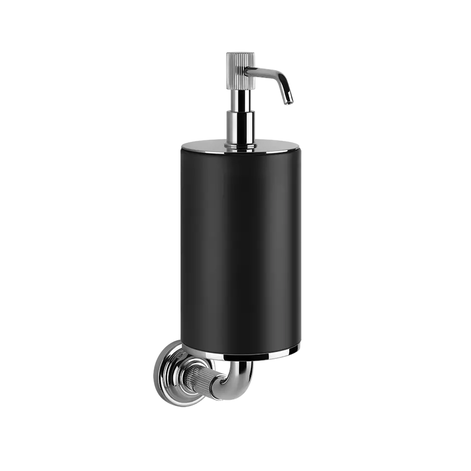Wandmontierter schwarzer Seifenspender. Die Venti20-Kollektion nimmt die Begeisterung für das Leben und den zukunftsweisenden Optimismus dieser Ära auf und bringt sie in die privaten Räume des zeitgenössischen Wohnens.