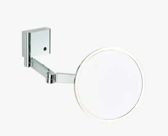 Wandmontierter runder Vergrößerungsspiegel (5x), doppelter Arm, Klasse 1, LED-beleuchtet mit stufenlos einstellbarer Lichtfarbe 2700 - 5600 K. Bilder von Artikel G00-669C