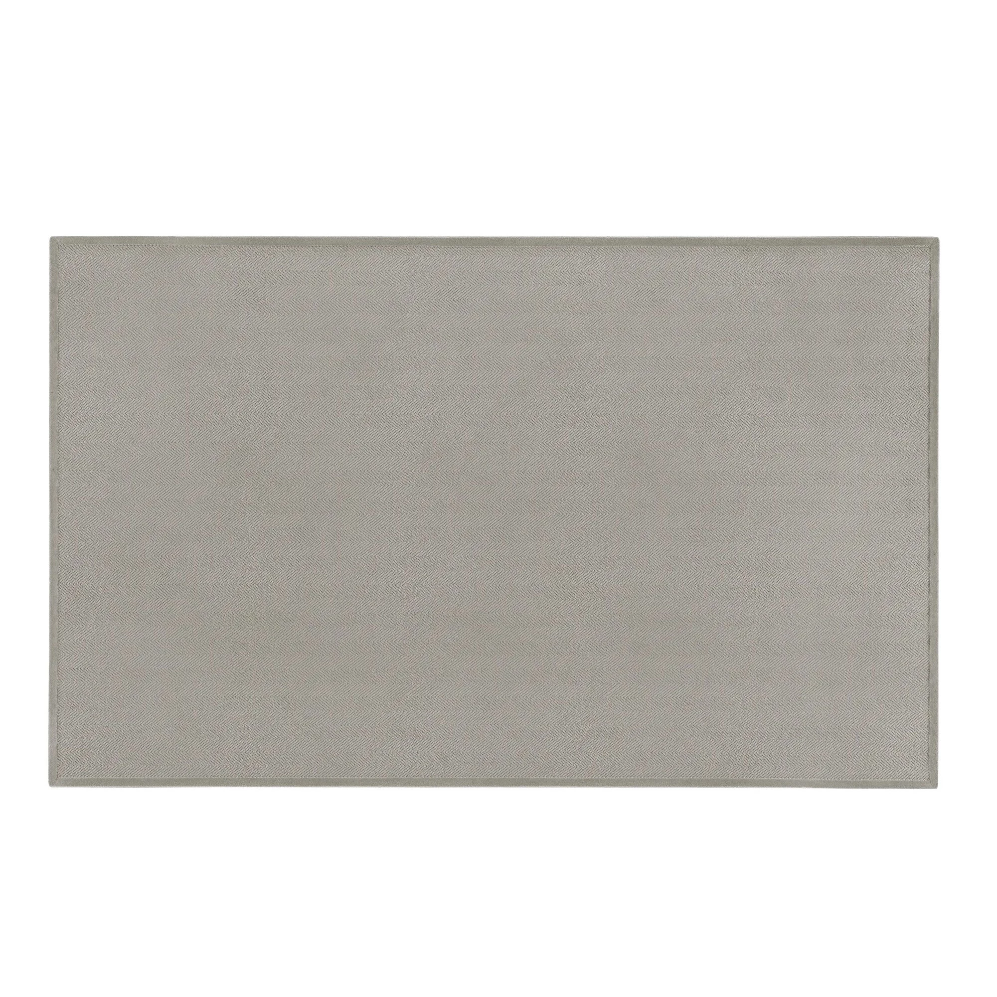 Rechteckig oder rund, mit der Möglichkeit, es auch maßgeschneidert zu haben, hat es ein originelles geprägtes Fischgrätenmuster. Der Auris-Teppich besteht vollständig aus regeneriertem Nylon in verschiedenen Farben.