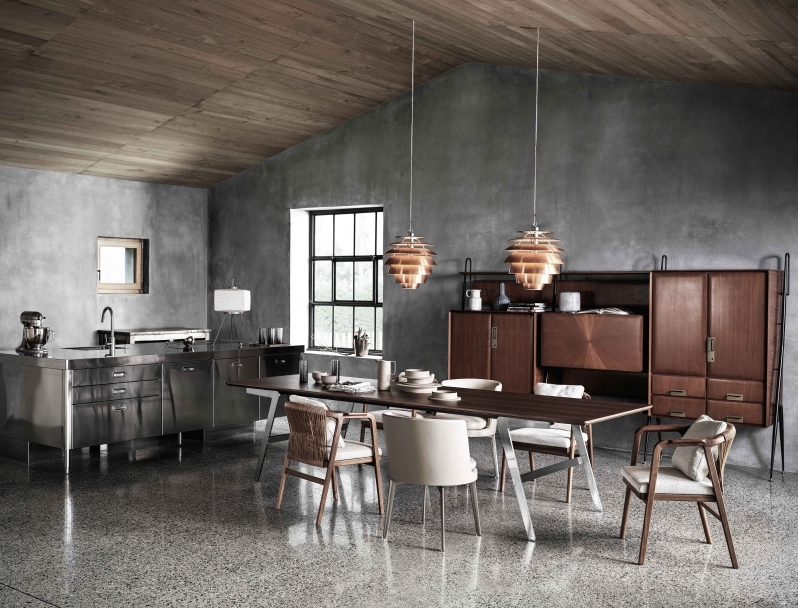 Soffio ist ein Tisch mit einer rigorosen architektonischen Haltung. Die flachen Metallbeine sind ein markantes Merkmal des Designs. Leicht ansteigend entwerfen sie eine originelle "Bumerang"-Form, die einen dynamischen Strom durch den Raum zwischen Tisch und Boden sendet. Solide und dennoch luftig spiegelt der Soffio-Tisch den faszinierenden Kontrast zwischen der Leichtigkeit der Metallbasis - erhältlich in satiniert, verchromt, gebrannt, schwarz verchromt oder champagnerfarben - und der schlanken rechteckigen Tischplatte wider, die in Canaletto-Nussbaum oder Esche erhältlich ist, in einer Reihe von Farben gebeizt oder in luxuriösem Marmor.