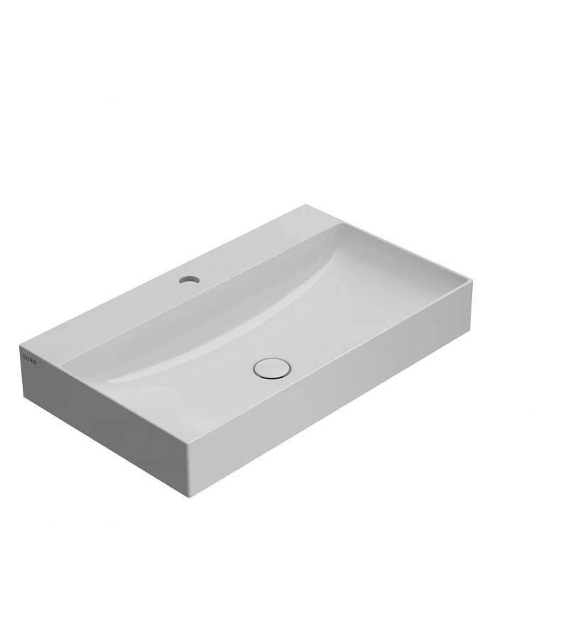 Waschbecken 80,47 h12 cm. Wandhängende oder aufgesetzte Installation. Befestigungskit inklusive. Gewicht 20 kg. Auch ohne Wasserhahnloch erhältlich, Code: B6R810BI. Eine Auswahl an in Italien hergestellten aufgesetzten und wandhängenden Waschbecken in verschiedenen Ausführungen und Größen, um allen Anforderungen des Innendesigns gerecht zu werden.