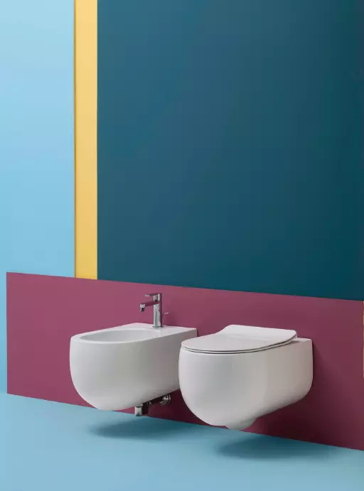 Wandhängende Toilette NORIM 54, schalldichte und stoßfeste Platte und Befestigungsschrauben WB9N inklusive. Wie bereits erwähnt, können unsere Badezimmer oft sehr klein sein. Warum also nicht Sanitärkeramik wählen, die mit Liebe zum Detail hergestellt wurde, eine Armatur, die großen Komfort bietet und das Gefühl vermittelt, einen geräumigen und luftigen Raum zu haben? Mit einem Gewicht von nicht mehr als 20 kg und einer bewusst kleinen Größe von etwa 35 cm Höhe, 54 cm Tiefe und 37 cm Breite nimmt die wandhängende Toilette nicht mehr Platz ein als nötig und ermöglicht dank ihrer Position auch eine gründliche und genaue Reinigung des darunterliegenden Bodens. Befestigt an der Wand ist die hängende Toilette zu einem der meistgefragten Produkte in der Inneneinrichtung von Badezimmern geworden. Dank des makellosen Weißes seines Glases und seines einfachen und minimalistischen Designs passt es gut in jede Einrichtungslösung, von der modernsten oder futuristischsten bis zur klassischsten und traditionellsten Dekoration.
