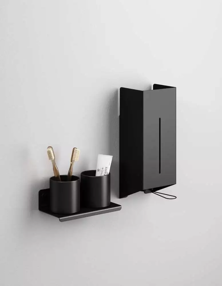 Der Agape Zahnbürstenhalter ist ein raffiniertes Accessoire für Ihr Badezimmer, das Funktionalität mit einer Note von Eleganz kombiniert. Hergestellt aus poliertem Edelstahl mit satinierten Kanten oder in einer undurchsichtigen schwarzen Oberfläche (RAL9005) erhältlich, bietet dieser Halter eine stilvolle und hygienische Lösung zur Organisation Ihrer Zahnbürsten. Sein schlankes Design, hochwertige Materialien und Liebe zum Detail machen ihn zu einer anspruchsvollen Ergänzung für Ihre Badezimmerdekoration.