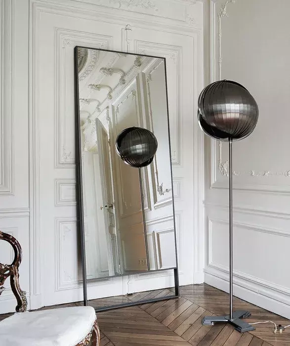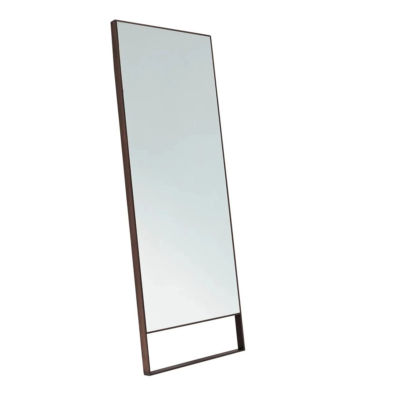 Mirrors with steel surround; thanks to the angled top surround they can be leaned against a wall. Proposed not only for the bedroom; they can also be used in a living area to make the ambiance seem larger.