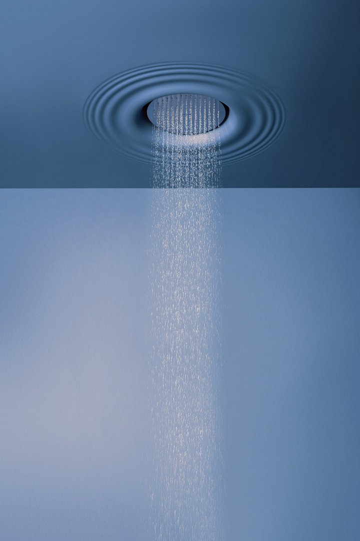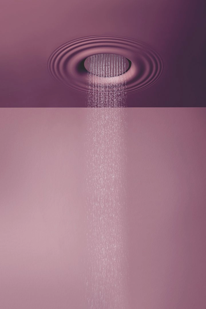 Encased ceiling showerhead in Flumood with nail, spray and waterfall jet, and inspectable nozzles. H 11 P 70 L 70.Delivery: 8-12 weeks