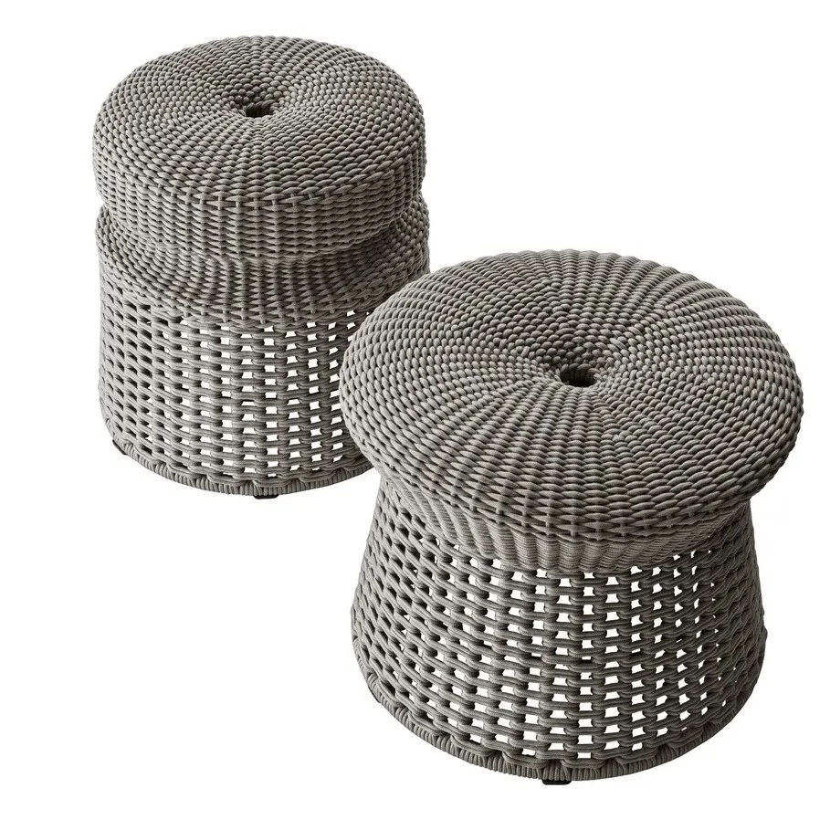 Hospes is an extremely versatile ottoman, a dynamic complement that can be used in different ways and that goes perfectly with different product families. Made in two sizes and three colours, it has a sturdy aluminium frame covered with a polyethylene fibre interlacing. In the upper part, the interlacing is held up by webbing that provides support and comfort.