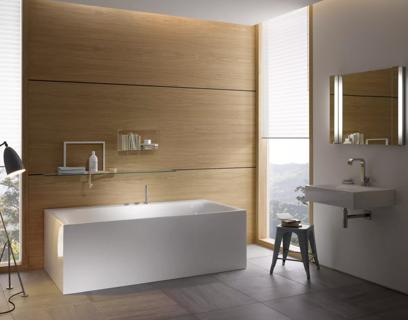 The wall-mounted version of BetteLux I Silhouette Side has a natural flow to it, despite the distinct, concise design. Delicate side edges form the generous interior, and provide a relaxed level of reclining comfort. The organic shape of the interior combines naturally with the linear exterior. The edge is broader along the wall side, making it ideal for storage and also for the fittings.Whirlsystems by request