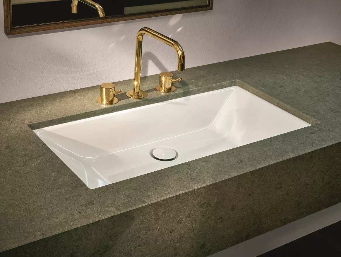 The BetteLoft undermount washbasin is ideal for combining the excellent optical and functional properties of glazed titanium steel with console surfaces in materials such as marble, natural stone or glass. The strictly geometric basin shape consisting of four conically tapered areas is characteristic of the BetteLoft line. Baths and washbasins are available in several versions and formats in the same design that can be teamed with Bette shower areas.