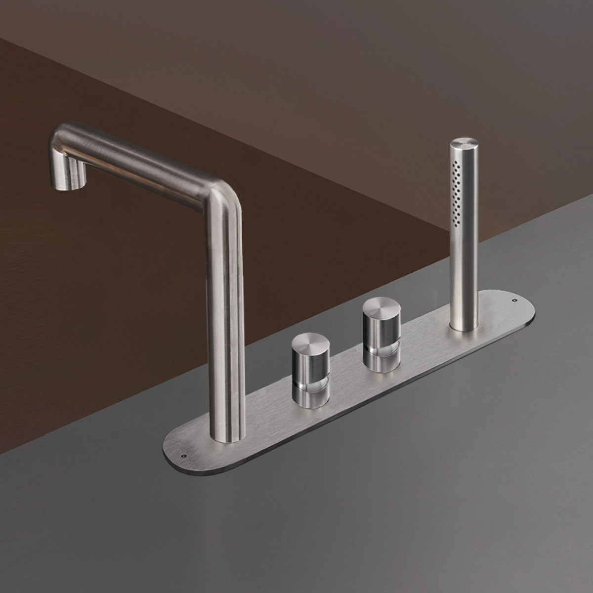 Enhance your bathroom aesthetics with the Ceadesign Collection Cartesio Rim Mounted Set of 2 Mixers, featuring a stylish spout and a convenient hand shower for a comprehensive bathing solution. The impeccable design and functionality make this set a sophisticated addition, delivering both elegance and practicality to your space.