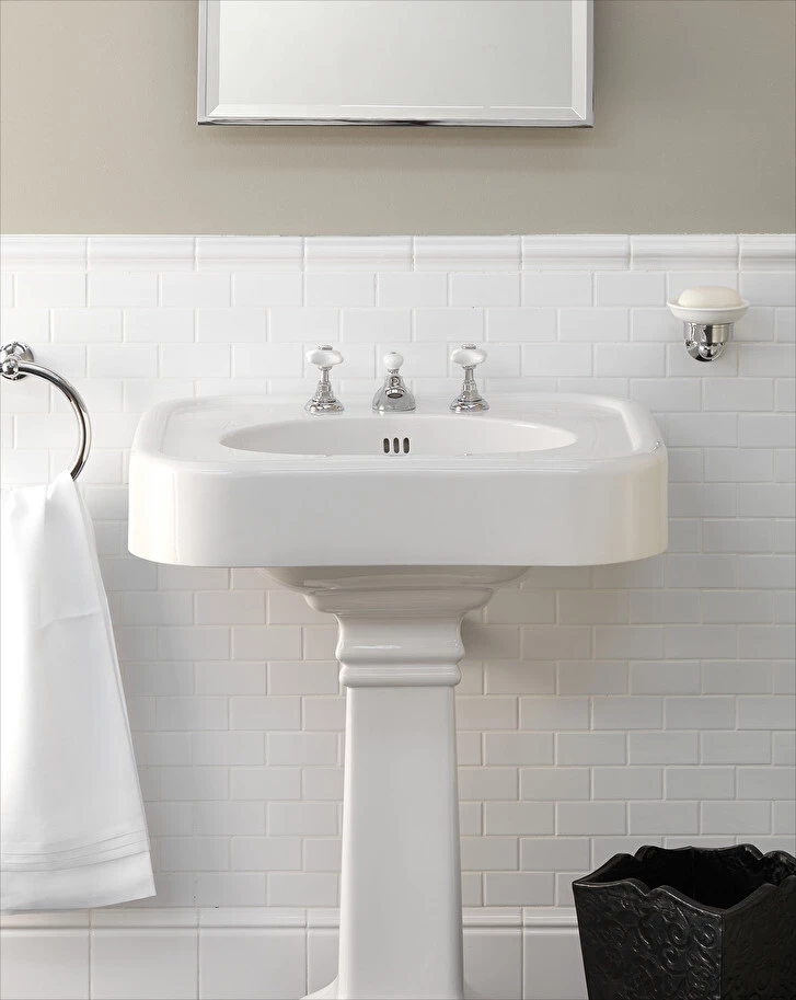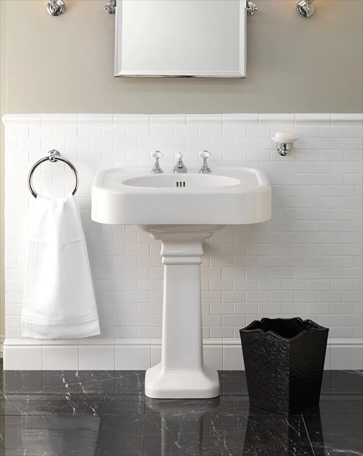 Step into an era of refined design with the Devon&Devon Washbasin, where essential geometric patterns from the Thirties seamlessly blend with the plastic volumes of the finest porcelain. This elegant washbasin, available in both 1 or 3 hole configurations with a complementary pedestal, embodies the purity of classic-contemporary style. Its timeless appeal harmoniously integrates into any setting, showcasing a perfect balance between heritage-inspired aesthetics and modern sophistication.