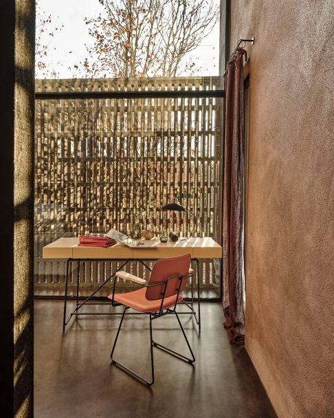 A different stylistic interpretation is expressed by the Echoes S.H. chair and dining chair that pairs the metal structure with cowhide: a classic, eye-catching combination but one that, thanks to the ergonomic contours of the seat and backrest, also ensures the utmost in comfort.