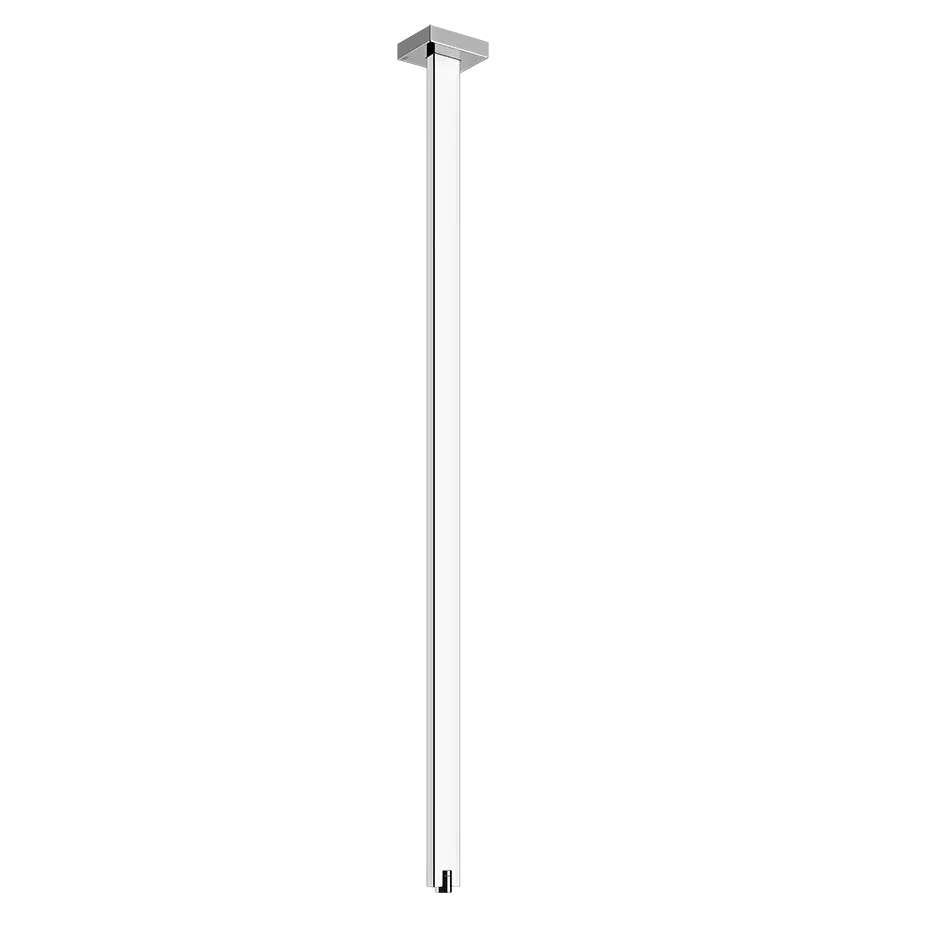 Ceiling-mounted spout to be completed with separate control. Gessi dares to move beyond usual and strengthened, crushing the shape of Rettangolo with an oblique cut, a diagonal line breaking it and changing its silhouette, reshaping its iconic outline evoking a “K”. The result is astonishing: the object preserves its original harmony, but it is new, different and beautiful.