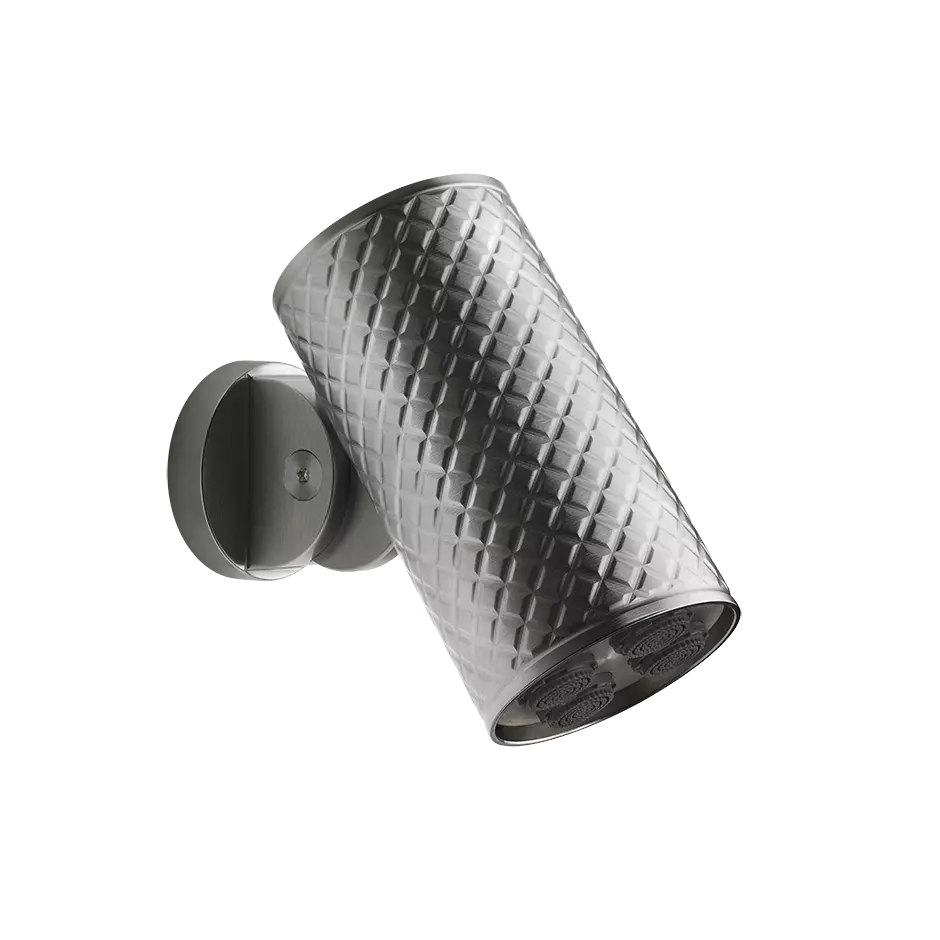 Wall-mounted adjustable showerhead INTRECCIO.Multi-spray function. The SpotWater shower systems, with their minimalistic designs and sculpture like shapes, elevate with grace the shower; indeed, they make water, the tool for a totally enjoyable and customizable pleasure.