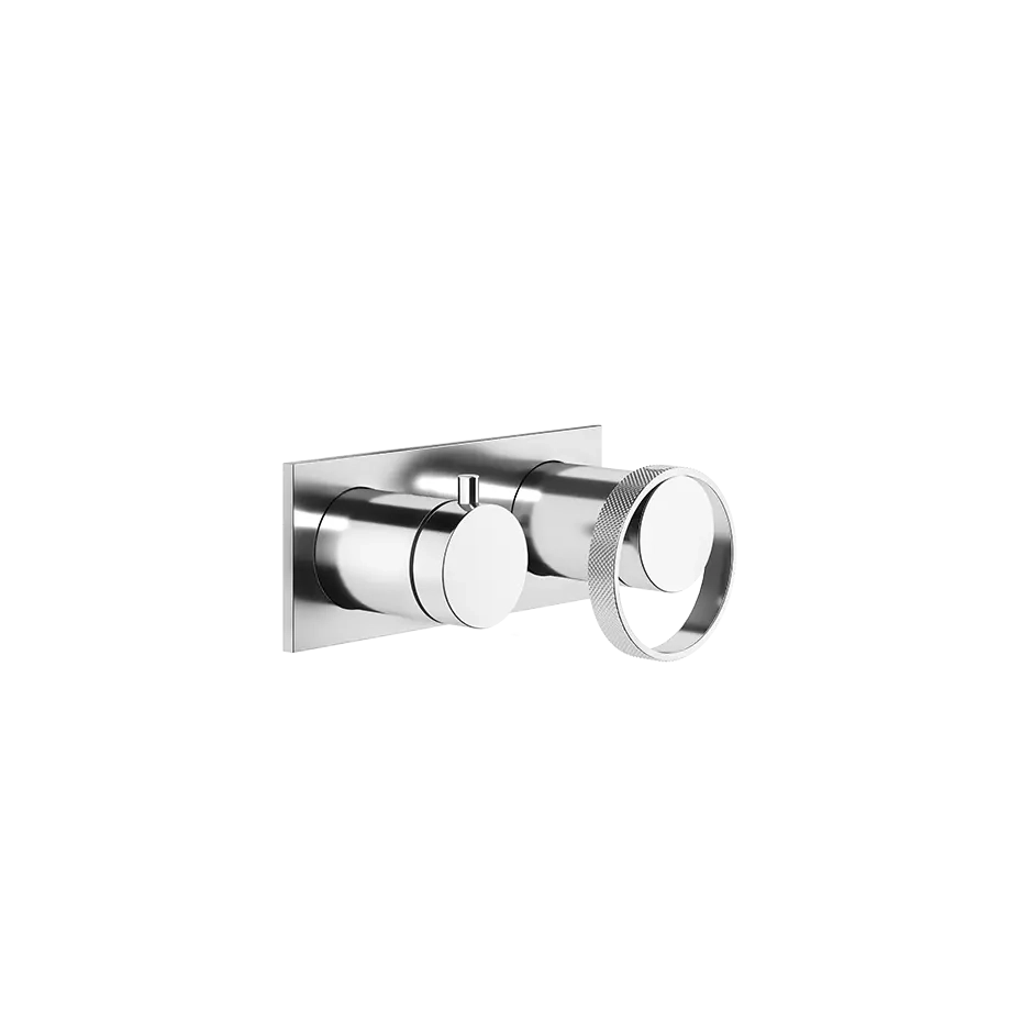 External parts for wall-mounted mixer two-way, automatic bath/ shower diverter. The Anello collection has numerous water supply variants and each bathroom accessory is coordinated accordingly. Anello presents unusual finishes and patterns enhancing the design, considered also as an alternative to metal surfaces that we are used to seeing in the field of design. Sophisticated and concrete, the new Anello collection by Gessi interprets a contem- porary, intense woman aware of her own charm that conquers the scene thanks to the softness of its volumes.