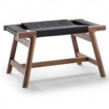 This modestly-sized ottoman has a big personality. The aesthetic integrity of the design is enhanced by craftsmanship skills steeped in the cabinetmaking tradition. The elegantly-flared lines of the ottoman’s structure – made entirely of solid Canaletto walnut or ash, available in an array of stain colors – lend the ottoman an exceptional air of visual lightness. As unique as it is sophisticated, the top is entirely hand-woven in a masterful design made from cowhide cord. The Giano ottoman is a captivating and functional piece that serves as a handy accessory to round out the living room decor.