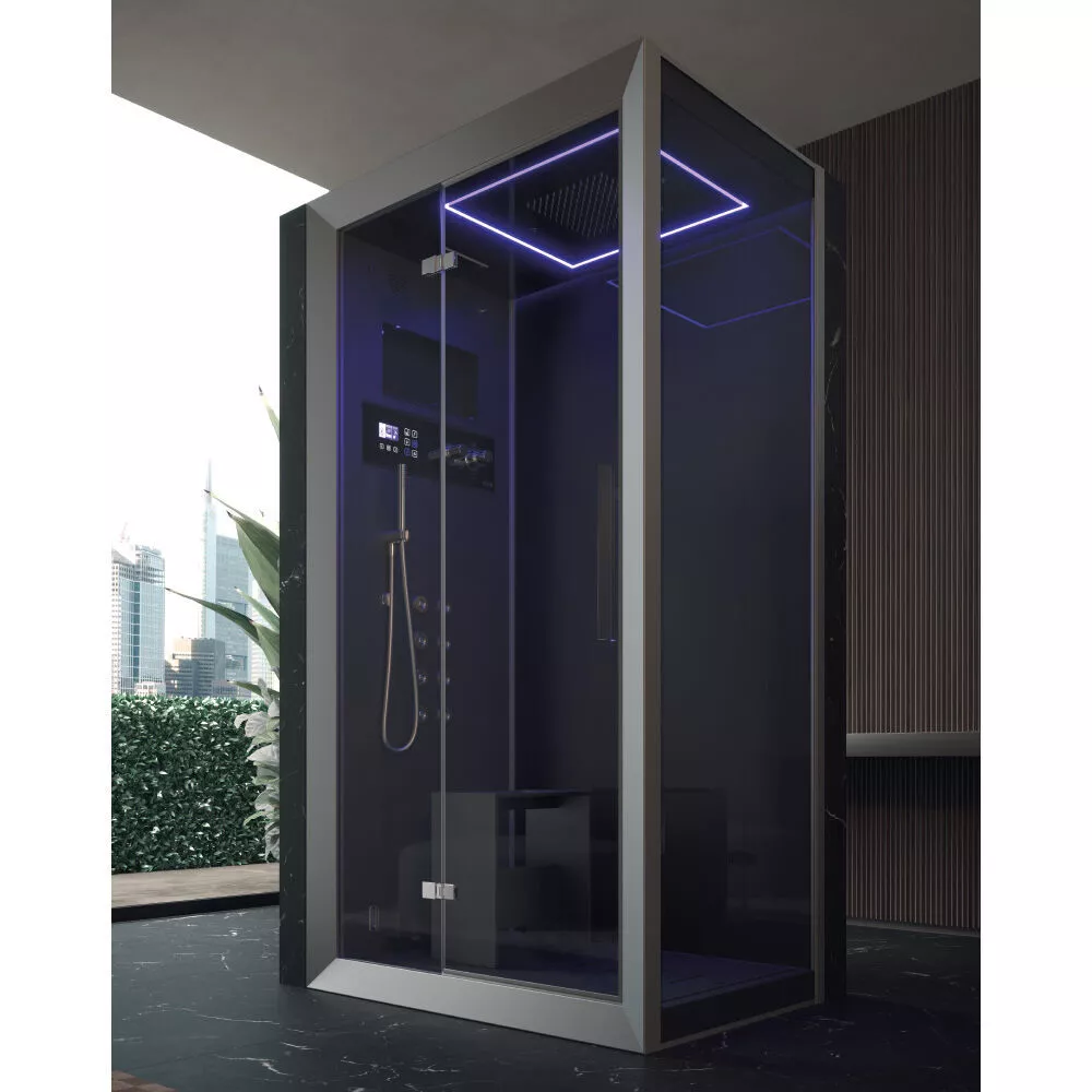 The hidden technology and refined aesthetics of a new way of experiencing showering – one that is all-encompassing, satisfying and enthralling – are presented in an exclusive setting. The Jacuzzi® jets give you the opportunity to select different types of hydromassage. With all the accessories included, you can choose from three options: neck and lumbar massage, where the jets massage the most tense points of your back; the effective, deep Shiatsu massage, with its Tonic and Relax programs; and the sequential massage, where you can choose your preferred speed. The Jacuzzi® Cromodream® allows you to choose from 6 basic colour tones to be diffused with the water directly onto your body. The energy of red, the brilliance of yellow, the purity of white, the serenity of green and the intensity of blue can also become 4 different colour cycles: these are true wellness programs. From the designer Mario Ferrarini comes the setting for the Jacuzzi® Frame, with its attention to detail, essential aesthetic and choice of naturally inspired materials that are pleasant to the touch and can make the sensory experience even more intense. Cross the threshold in a continuous conceptual space to enter the forefront of wellness. The Jacuzzi® Touch Screen gives you access to all the functions of the shower, Turkish bath and hydromassage with a single touch; a unique electronic control system brings together every function on a simple, intuitive control panel.