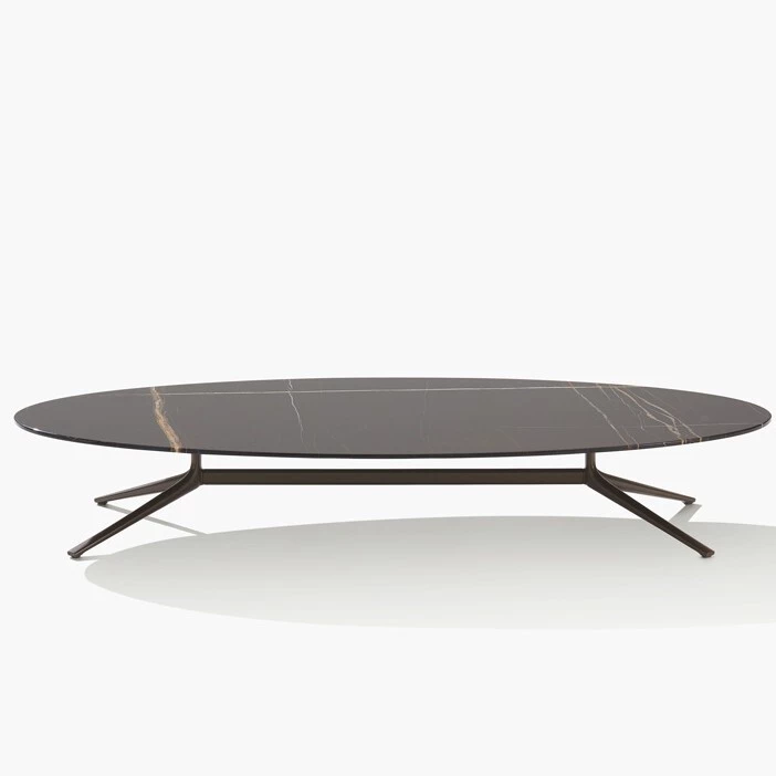 A collection with an elegant and light image, with thin tops made of wood, marble, or glossy and mat lacquered finishes. Available in two heights and different shapes to facilitate the combination of several elements, these tables are easy to include in the living area and perfect in combination with the sofa system of the same name.