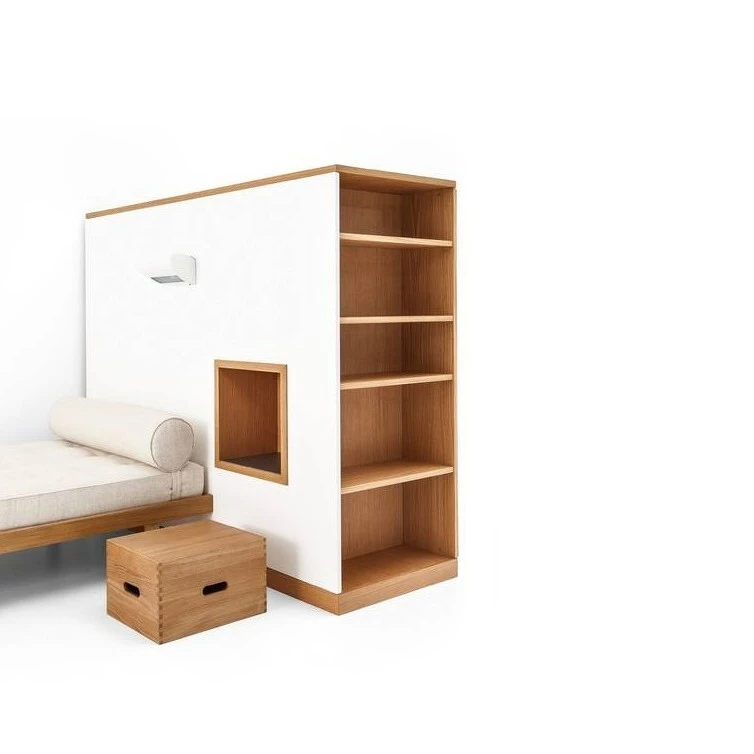 An entire room for sale, a faithful reproduction of a student room in the Maison du Brésil, inaugurated in 1959 at the Cité Internationale of the University of Paris. In the early 1950s, the Brazilian government commissioned the design from the architect Lucio Costa, who in turn brought Le Corbusier on board, over time handing over more responsibility, to the point that the latter eventually signed off the building design. Le Corbusier’s office revised a number of key elements, and then brought in Charlotte Perriand to help with the interiors. The way Le Corbusier saw it, the wardrobe would separate the entrance hall and the bathroom block from the bedroom and study areas. Charlotte Perriand, on the other hand, took a more rationalist view, favouring the idea of having the wardrobe accessible from more than one side. For the bed frame, solid wood was preferred to metal, with a mattress and bolster. The apartment also included a wall-hung bookcase and blackboard, as well as the Tabouret Maison du Bresil, already available in Cassina Collection.