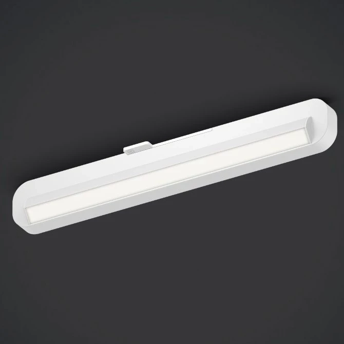 With its glare-free lens optics and its various lengths, versions and finishes, Mito alto side track is highly versatile – opening up brand-new possibilities for lighting design. Thanks to the integrated power supply, the track versions can also be mounted directly on solid ceilings. Mito alto side track is a linear LED ceiling luminaire with a single-sided light output. The color temperature can be preset or continuously controlled via Occhio air or DALI. In addition, you can choose between three sizes – 40 cm, 70 cm and 100 cm.