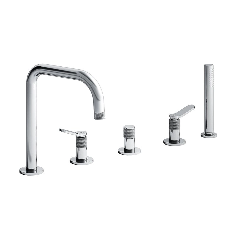 Immerse yourself in opulence with the Cristina Rubinetterie Contemporary Lines East Side 5 Hole Deck Mounted Bath Mixer. Featuring a diverter, spout, pull-out metal anti-lime hand shower, and FOLLOW ME technology, this deck-mounted mixer provides a lavish and convenient solution for your bathing space. Elevate your bathroom aesthetics with this sophisticated addition.