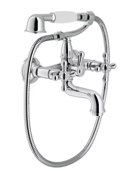 Pattern of contrasts in vintage style. Sensations of pleasant tranquillity. Peace and well-being from a distant past: the Grazia collection brings back the charm and appeal of ancient times, mixing a marked 20th century style with the most modern technological innovation of our brand.BATH, EXTERNAL GROUP WITH SHOWER SET. Anti limescale aerator M 28 x 1