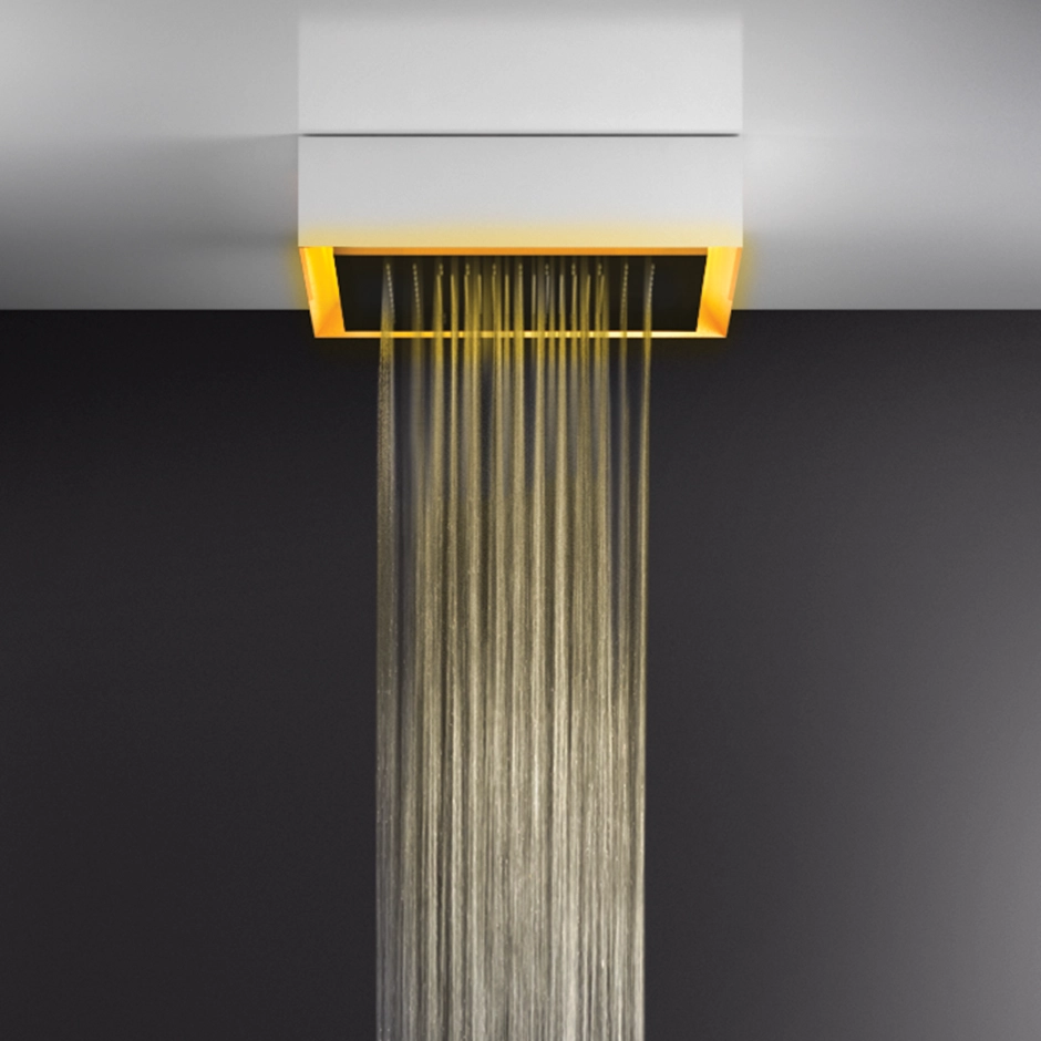 500x500 Exposed shower system, with RAINFALL function and chromotherapy effect, forceiling/ false-ceiling installation, with white frame. Electronic parts included with remote