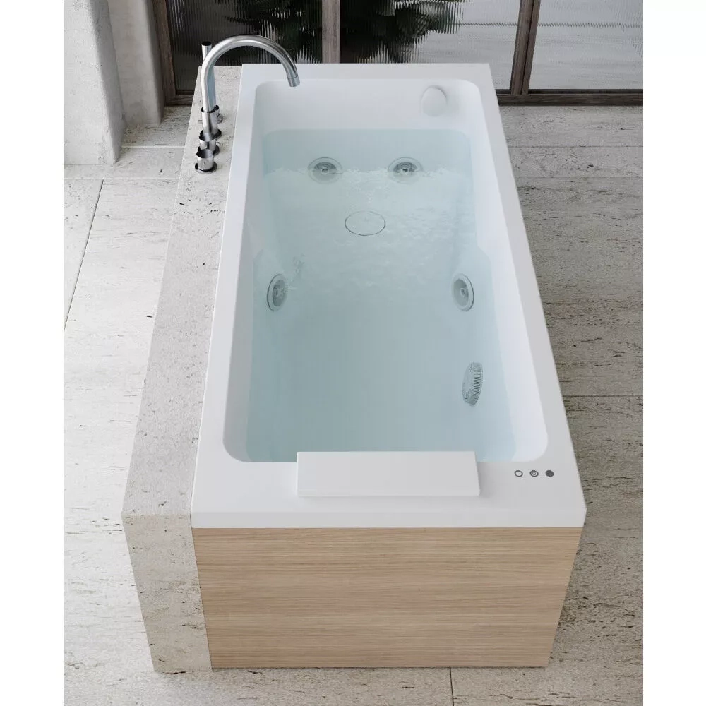 La baignoire à remous Sharp 75 a éliminé tous les éléments inutiles pour se concentrer sur la fonctionnalité et l'ergonomie : le résultat est d'augmenter au maximum l'espace interne et ainsi offrir un confort substantiel, même dans les modèles de taille plus compacte. Les innovations technologiques les plus récentes se concentrent sur l'électronique et les fonctions multisensorielles. Des lignes simples et carrées, et des panneaux personnalisés sont le produit d'une synthèse complète de la forme.