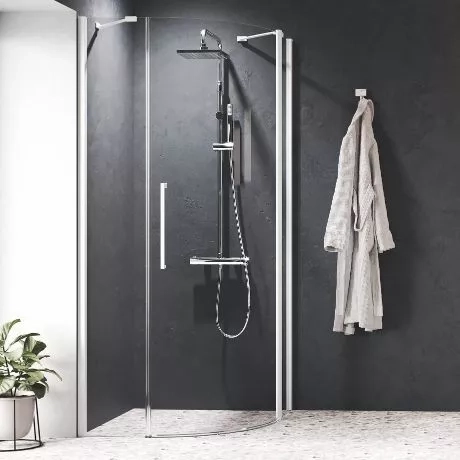 ENCLOS DE DOUCHE QUADRANT, 1 PORTE À CHARNIÈRE + 2 PANNEAUX FIXES