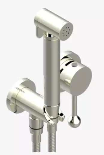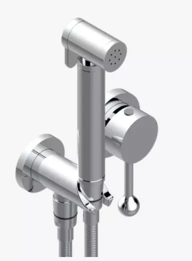 Garniture uniquement pour douche WC comprenant : douchette, mitigeur mural monocommande, tuyau renforcé (1,25 m), sortie murale avec coude intégré avec butée de sécurité. Images de l'article U5C-5840/MBG