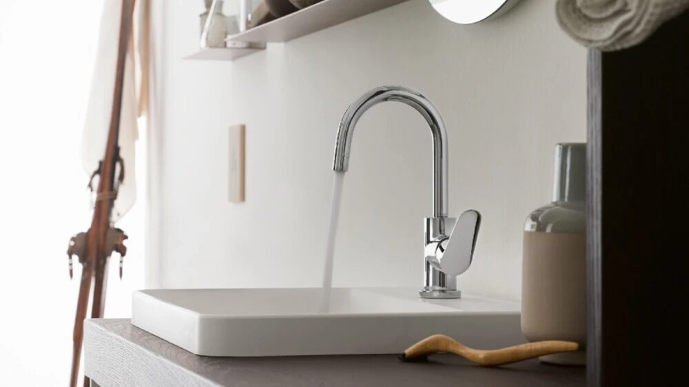 LAVABO, COMMANDE UNIQUE. Cartouche à deux étapes pour économiser l'eau à 50%
