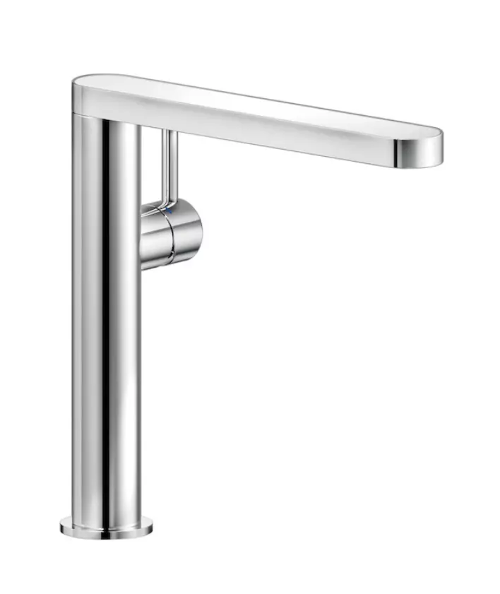ÉVIER, MITIGEUR MONOCOMMANDE CHROME ET COUVERCLE FENIX NTM®. Cartouche à deux étapes de 50% pour économiser l'eau.