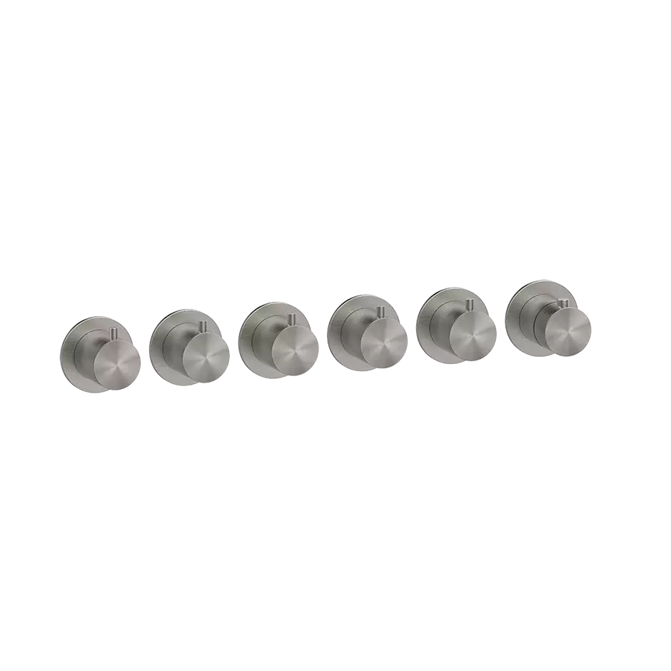 Installation verticale/horizontale avec cinq sorties séparées. Avec son utilisation exclusive de l'acier inoxydable AISI 316, la ligne Gessi Gessi316 représente le summum du luxe moderne, affichant un mariage parfait entre durabilité et attrait esthétique. Cette collection émane un raffinement contemporain avec des lignes épurées et un style simple qui se fond facilement dans des environnements de salle de bains de luxe.