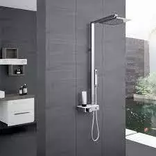 PANNEAU ÉQUIPÉ EN LAITON CHROMÉ AVEC DOUCHE DE TÊTE, POUR FIXATION MURALE