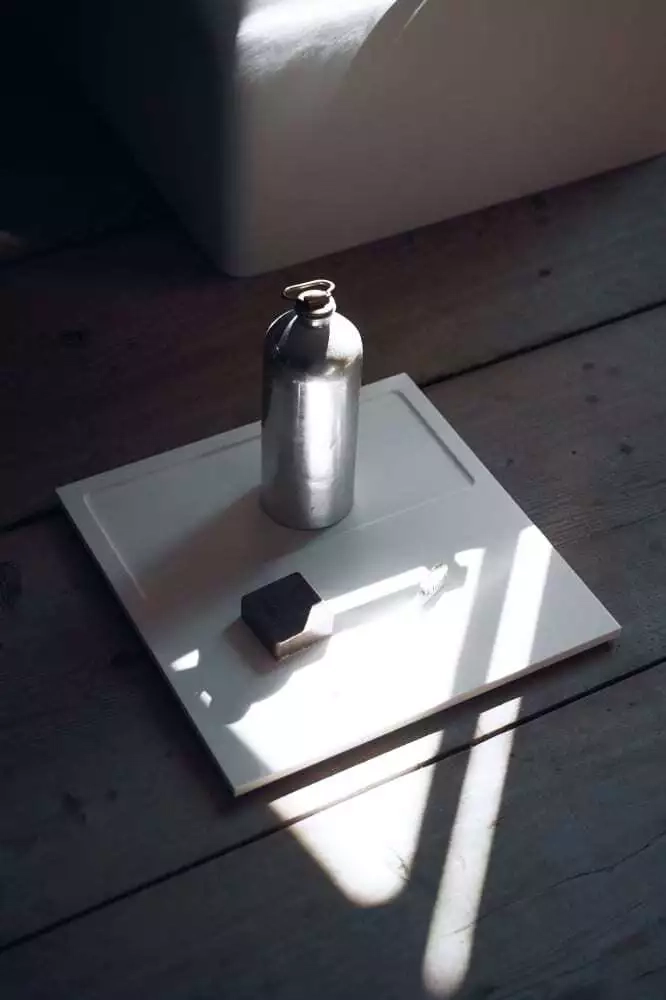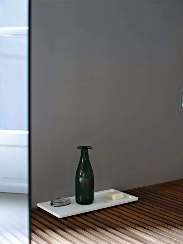 Porte-savon/plateaux polyvalents en Cristalplant® blanc ou en marbre blanc Carrara, en marbre noir Marquina, en marbre vert Alpi ou en marbre Emperador foncé ; peuvent être placés sur les comptoirs. Ils peuvent également être placés sur les plateaux Surf, fabriqués dans le même matériau.