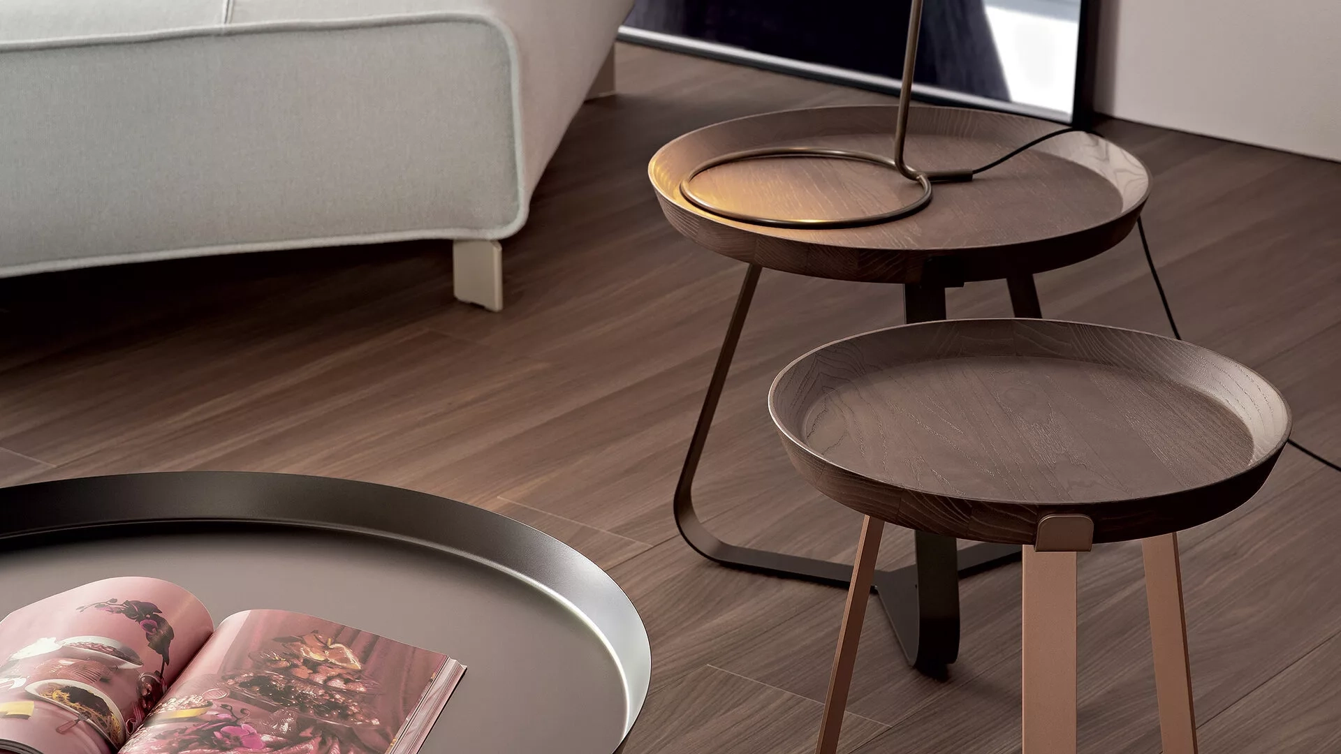 Une onomatopée expressive qui rappelle les sons des cigales : voici l'image qui a inspiré la nouvelle ligne de tables basses de Bonaldo. Le design géométrique, élancé et arrondi de la structure les rend légères, tandis qu'un jeu d'équilibres entre les angles vifs et les angles arrondis soutient un plateau amovible pratique, un élément qui peut être encore embellie avec un dessus en céramique raffinée. Dans la version d'un seul matériau, l'effet est d'une élégance essentielle et fonctionnelle ; dans la version avec le dessus en céramique, le contraste entre les deux matériaux ajoute encore du caractère. Les tables basses Frinfri sont disponibles en trois hauteurs différentes et tous les modèles sont proposés dans de multiples variantes de couleur, pour permettre de choisir celle qui convient le mieux aux besoins stylistiques individuels. La variante Frinfri Wood présente un dessus en bois et est disponible en deux tailles (haute et moyenne).